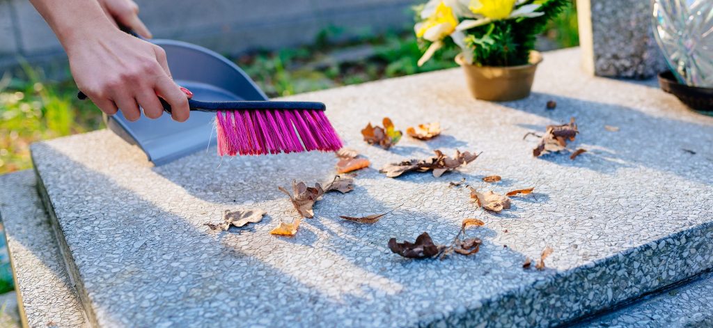 Nous offrons des services d’entretien variés, adaptés à vos besoins. Un entretien de base comprend l’arrosage et le rajout de terreau, le retrait des fleurs fanées et autres déchets. Pour un entretien plus avancé, nous proposons le désherbage autour du monument, le taillage d’arbustes, ainsi que le lavage, le brossage et le séchage de la tombe et de ses ornements, qu’il s’agisse de pierre brute ou polie.